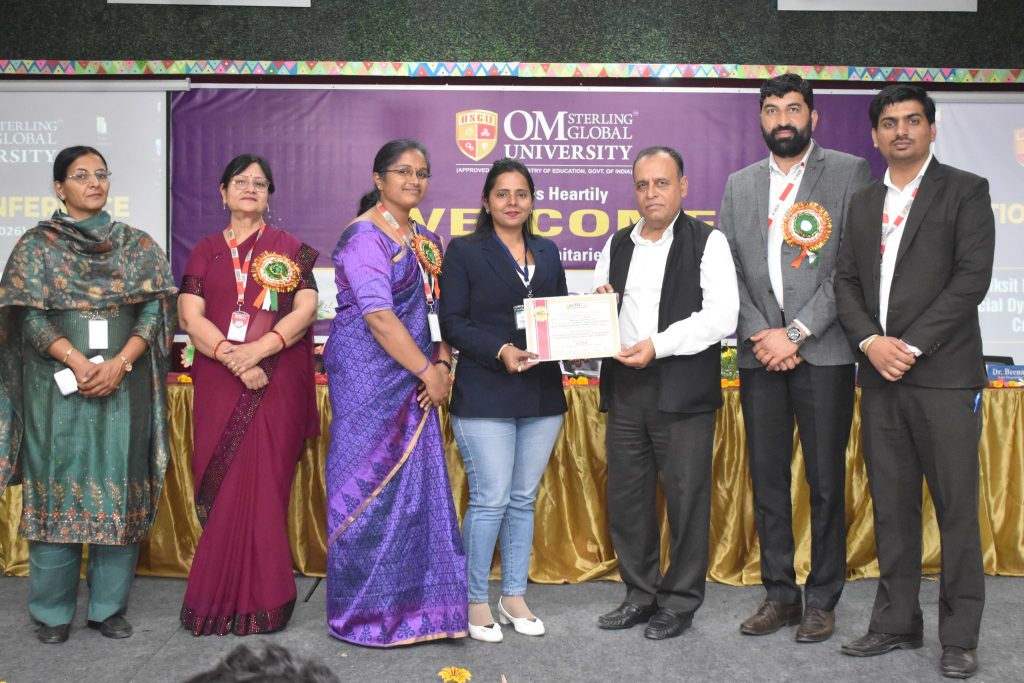 OM Sterling Global University proudly hosted the National Conference on “Viksit Bharat @2047: Innovations in Social Dynamics, Sustainable Agriculture, Creative Arts and Wellness.”