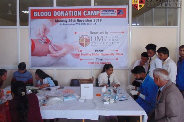 In view of the social responsibility and service, the organization of blood donation camp is a regular program at Om Sterling Global University.