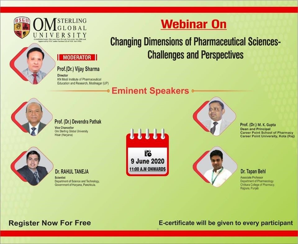 Role of Pharmaceutical Sciences is very challenging for curative purposes.In this contest Om Sterling Global University,Hisar is organising webinar on “Changing Dimensions of Pharmaceutical Sciences – […]