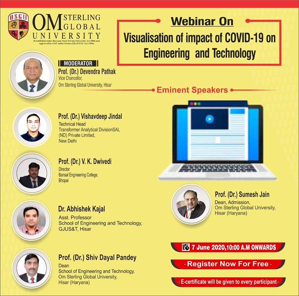 The Webinar on “ Visualization of impact of Covid 19 on Engineering & Technology ” being organized by Om Sterling Global University, Haryana. The global participants […]