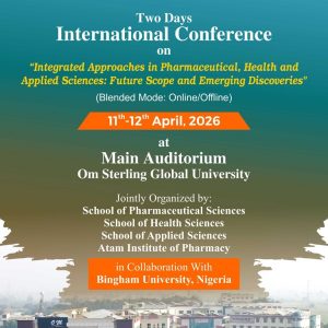 Two day International Conference On Integrated Approaches in Pharmaceutical, Health and Applied Sciences: Future Scope and Emerging Discoveries 11 - 12 Apr 9:00 am - 4:30 pm Om Sterling Global University HisarOSGU