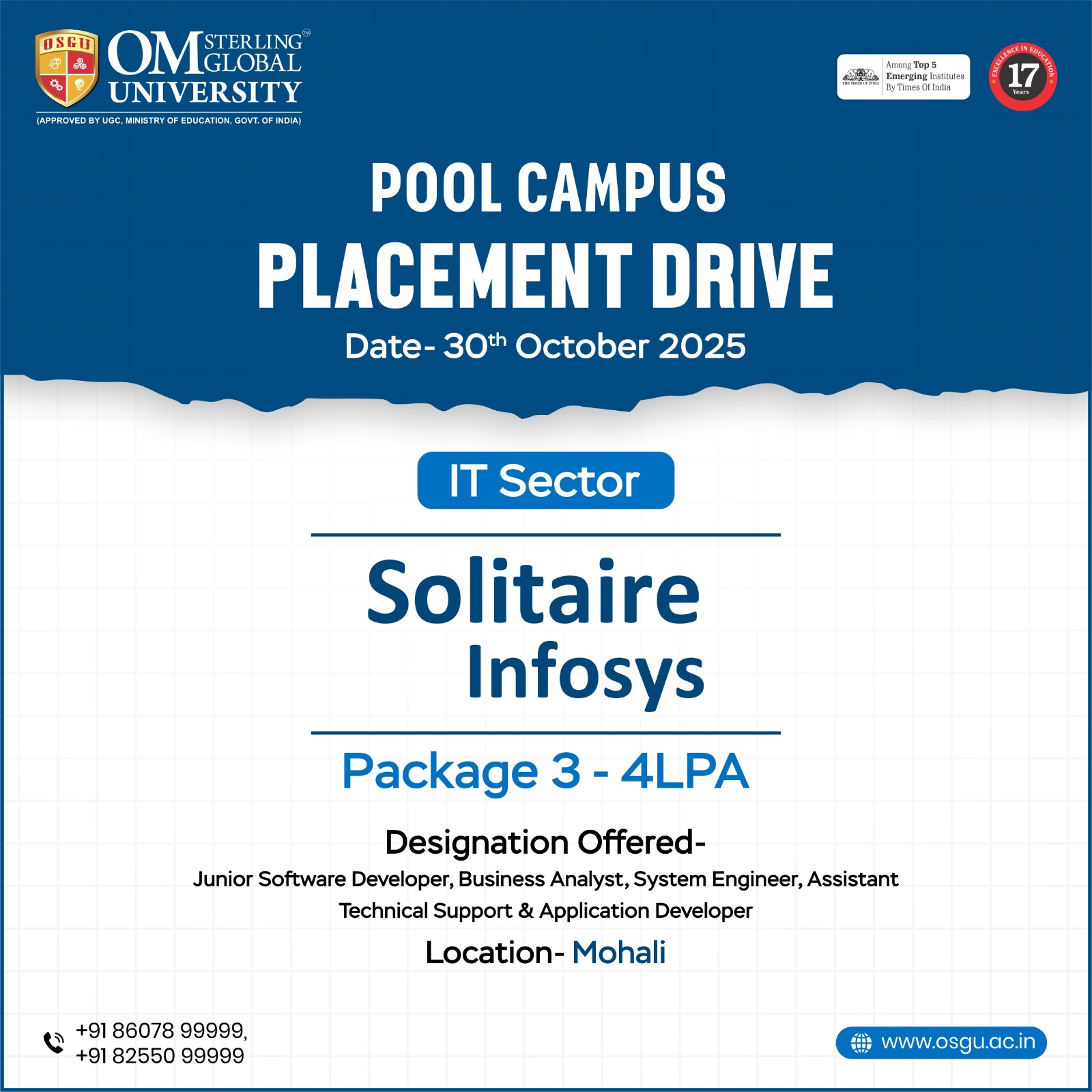 OSGU is thrilled to welcome Solitaire Infosys for the Pool Campus Placement Drive on 30th October 2025!